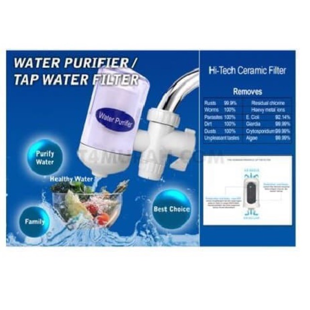 Saringan air kran filter keramik ini adalah alat penyaring yang bagus berisi karbon aktif berfungsi sebagai filter air yang mengalir melewati keran.