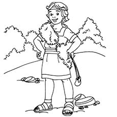 Our colouring page shows brave david defeating the fierce champion goliath with this simple slingshot.